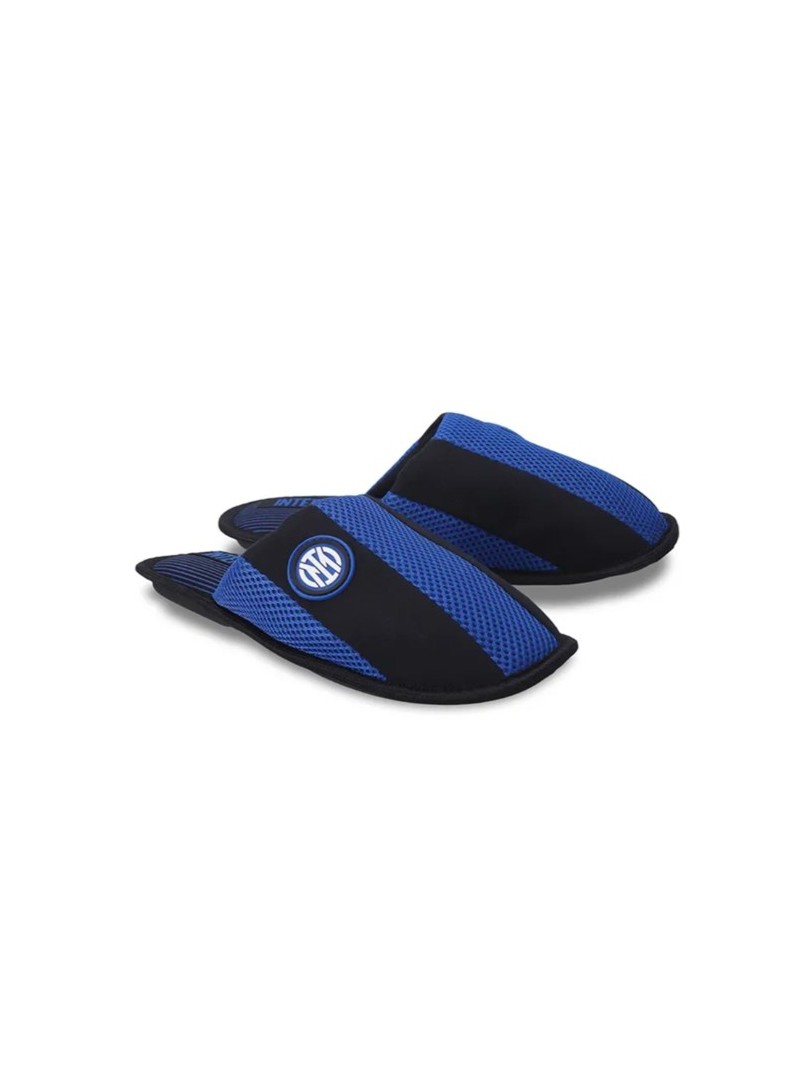 INTER PANTOFOLE CASA DA ADULTO, COLORE NERAZZURRO CON LOGO UFFICIALE STAMPATO A COLORI SU FONDO NERO.