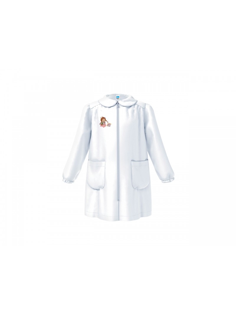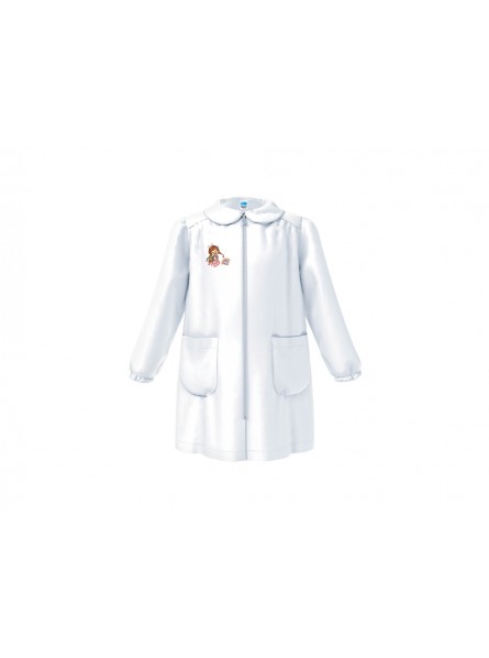 AI-GREMBIULE SIGGI BIANCO BAMBINA CON ZIP, RICAMO HAPPY 6ANNI TG65 116CM