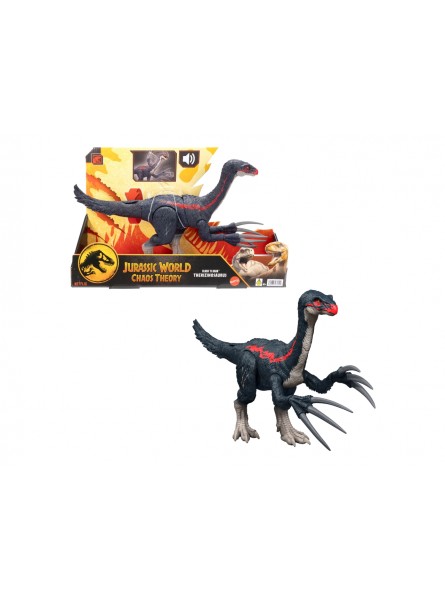 Il Terizinosauro visto nella serie Jurassic World può ora entrare a far parte della collezione di tutti i fan. Questo dinosauro carnivoro da combattimento giocattolo è dotato di effetti sonori, funzioni di attacco e di feroci artigli per infilzare i nemici. Gli attacchi laceranti si attivano ruotando la coda. La parte superiore del busto si muove da un lato all'altro per sferrare un colpo con gli artigli mentre le fauci si aprono e attivano i ruggiti. Scansiona il codice di tracciamento nascosto nell'app gratuita Jurassic World Play con un dispositivo smart compatibile (Android o iOS, non incluso) e sblocca una versione digitale del dinosauro e l'accesso a divertentissimi giochi! Per gli appassionati di dinosauri dai 4 anni in su.