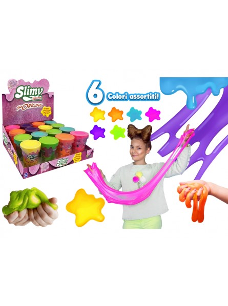 L'originale Slimy con i colori effetto metallizzato! 16 vasetti da 80 grammi ciascuno, disponibile in 6 colori assortiti.