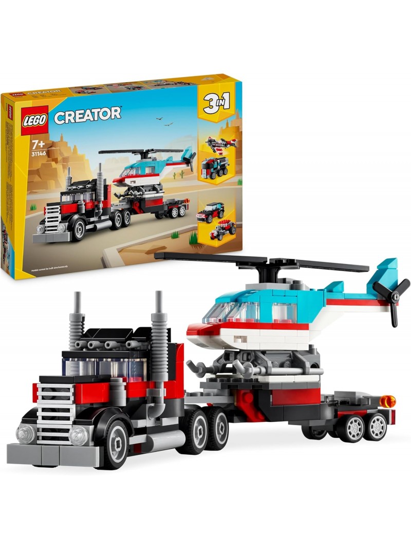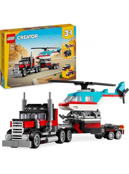 3 set di veicoli giocattolo in 1 scatola: con il set di giochi 3 in 1 LEGO Creator Autocarro con Elicottero, i bambini e le bambine da 7 anni in su possono costruire e ricostruire 3 set diversi utilizzando gli stessi mattoncini