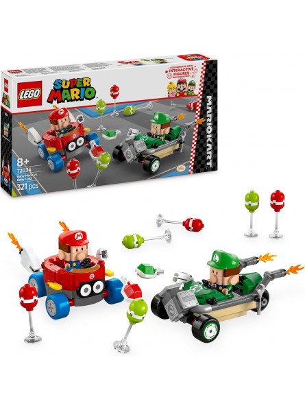 Set di giochi Mario Kart per bambini e bambine da 8 anni in su: unisci le forze con Baby Mario o Baby Luigi giocattolo per battaglie con i palloncini e corse ricche di divertimento, con questo set di giochi d’avventura LEGO Super Mario