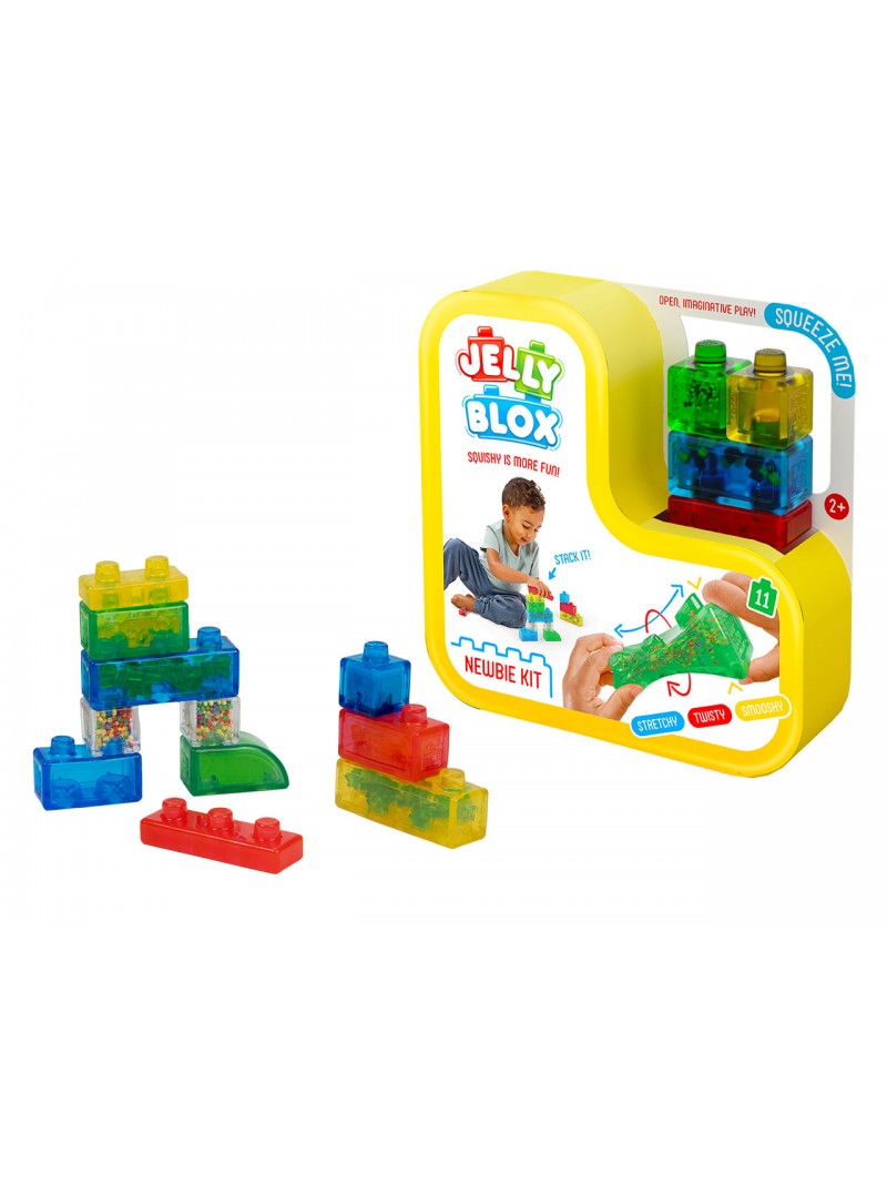JELLY BLOX COLORATI per iniziare subito a giocare! I mattoncini, morbidi, stratchable e resistentissimi sono riempiti di vari materiali per un’esperienza tattile sempre diversa!