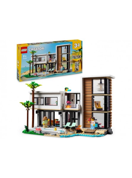 Con il divertente set di gioco della Casa moderna (31153), i bambini e le bambine dai 9 anni in su possono esplorare 3 diversi case giocattolo LEGO®. La lussuosa casa sulla spiaggia a 2 piani si erge all'ombra di 2 palme e dispone di cucina, soggiorno, sala lettura, camera da letto, bagno con doccia, balcone e arredi moderni tra cui una poltrona e un lampadario. C'è anche una piscina dove i bambini possono inventare storie divertenti. Questo set costruibile LEGO per i bambini offre un mondo diemozionanti possibilità di gioco con 3 diversi modelli di case da costruire utilizzando gli stessi mattoncini. I bambini possono creare una casa moderna, ricostruirla in un elegante edificio cittadino a 3 piani con vasca idromassaggio e terrazza panoramica o trasformarla in una baita nel bosco. Nella Casa moderna e nell'edificio cittadino a 3 piani, è possibile accedere alle stanze dal retro, mentre la baita nel bosco ha un tetto apribile. Questo playset con 3 abitazioni include 2 minifigure ei fan LEGO possono scambiare i loro outfit. Ciascuno dei 3 modelli può essere creato con l'aiuto dell'app LEGO Builder per una divertente esperienza digitale.