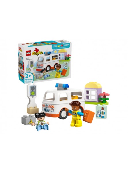 I bambini possono interpretare emozionanti scene di soccorso con il giocattolo Ambulanza e autista (10447) per bambini in età prescolare. Questo giocattolo per bambini include anche un’ambulanza guidabile e 2 personaggi LEGO® DUPLO® – un paramedico e una ragazza – per un gioco creativo e immaginario.