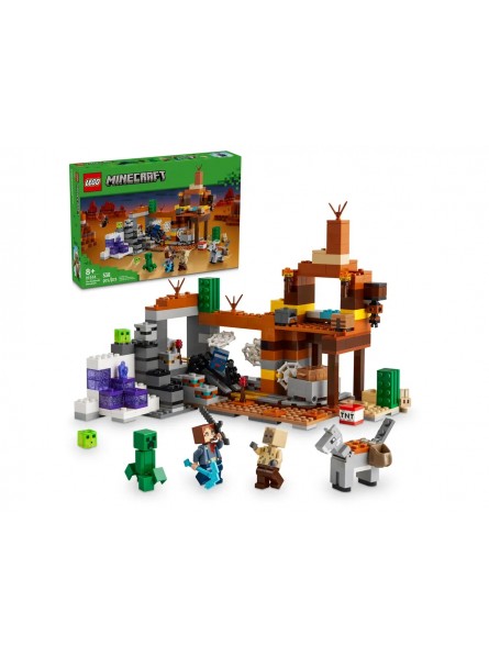 Il giocattolo La miniera delle Badlands (21263) è un set basato sul famoso videogioco per i giocatori di Minecraft®. Questo versatile giocattolo da costruzione per bambini presenta i popolari mob di Minecraft ed è un fantastico regalo per i bambini e le bambine dagli 8 anni in su che amano i giocattoli di esplorazione Minecraft, i giocattoli di avventura per bambini ei mattoncini per la costruzione. I bambini si uniscono all'Esploratore delle Badlands in una miniera abbandonata nel bioma delle Badlands, dove possono posizionare la dinamite tra le pietre e attivare una funzione di esplosione per rivelare cristalli di rame, oro, pietra rossa e ametista. Possono poi caricare il carrello da miniera e percorrere i binari per uscire dalla miniera. Potranno infine saltare in groppa all'asino (completo di grandi bisacce) per raggiungere la base dell'Esploratore, con il suo letto e l'attrezzatura. I mob ostili che dovranno combattere lungo il percorso includono un ragno delle caverne Minecraft, un Creeper, un Husk e due slime. Per un ulteriore divertimento digitale, i costruttori possono ingrandire, ruotare i modelli in 3D e monitorare i loro progressi utilizzando la divertente e intuitiva app LEGO® Builder.