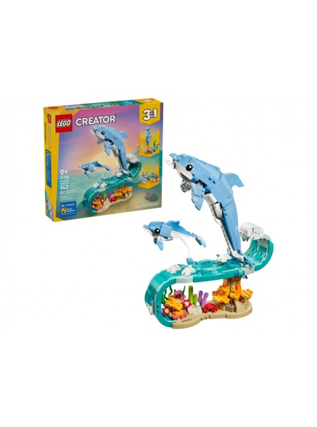 Animali marini: meravigliosi delfini LEGO® Creator consente ai bambini dai 9 anni in su di inventare storie divertenti. Questo set di gioco con animali marini per i bambini e le bambine offre 3 diverse opzioni di costruzione con lo stesso set di mattoncini. Possono scegliere di costruire un modello dinamico di un delfino adulto e di un piccolo con caratteristiche snodabili che cavalcano un’onda sopra il corallo. Può essere ricostruito in un cavalluccio marino snodabile su un colorato supporto con alghe e una conchiglia snodabile, o in un granchio accanto a piante marine e una medusa. Una volta terminato il gioco, ogni bellissimo modello può essere esposto con orgoglio come bellissima decorazione naturale su uno scaffale o una scrivania. Questo set LEGO Creator 3 in 1 ispirerà la tua immaginazione ed è una fantastica idea regalo per i bambini che amano gli animali marini. I bambini possono costruire ciascun playset con sicurezza utilizzando l’app LEGO Builder: ingrandisci, ruota in 3D e tieni traccia dei progressi con istruzioni digitali facili da seguire. I modelli non possono essere costruiti simultaneamente. Il set contiene 542 pezzi.