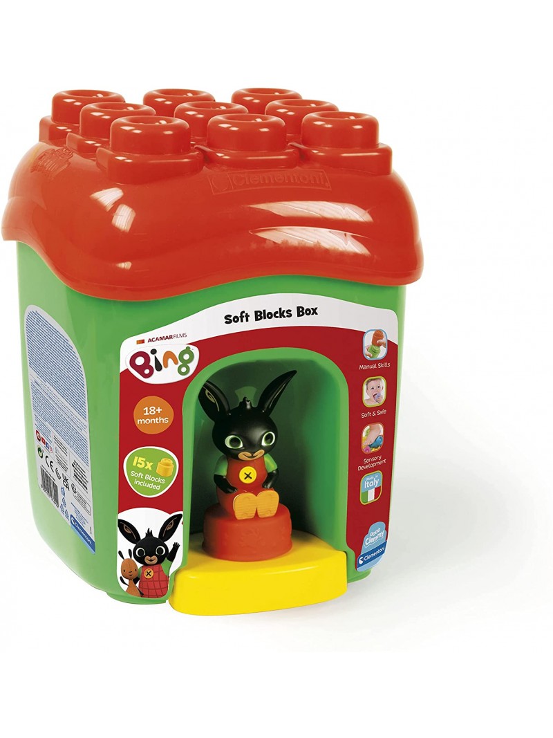 Un simpatico secchiello di Bing con tanti morbidi mattoncini Clemmy pensati per far giocare i più piccoli in assoluta sicurezza.