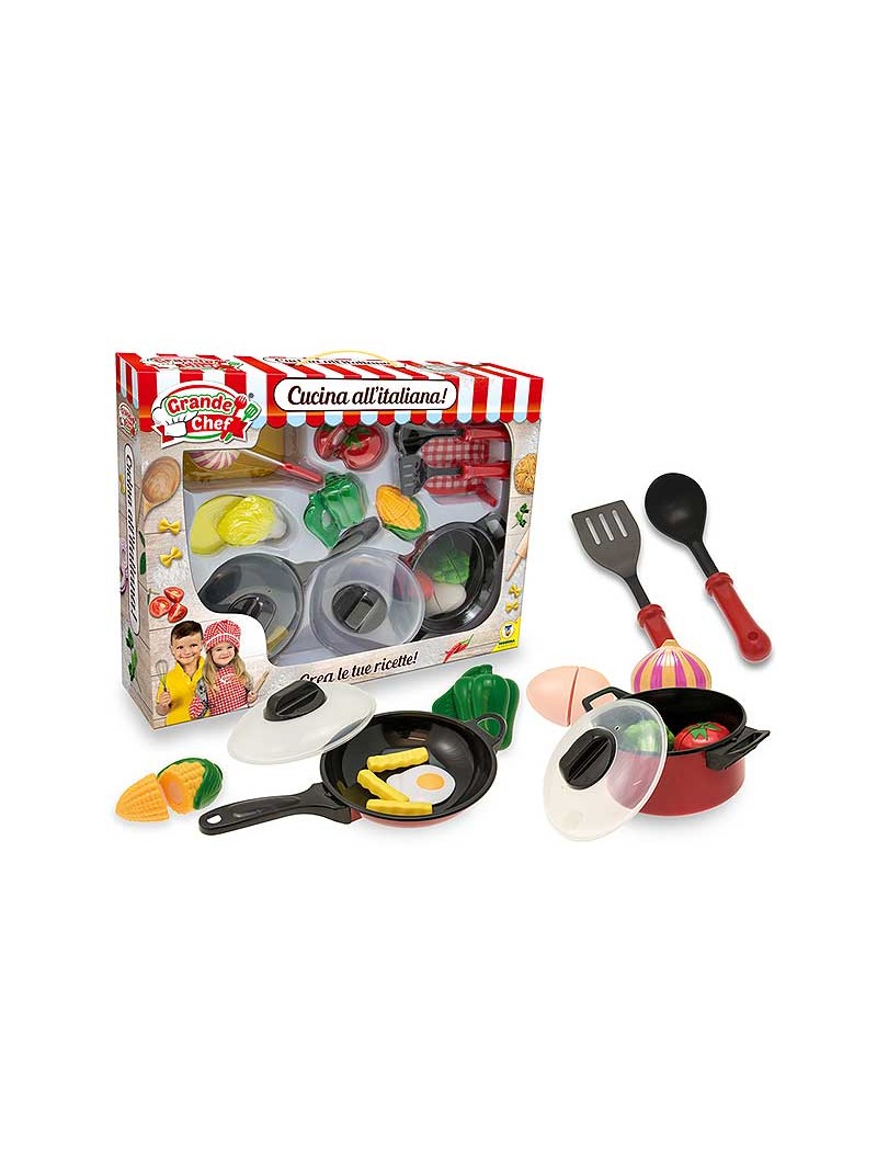 CUC-GRANDE CHEF PENTOLE E PADELLE CON COPERCHI, MESTOLI E VERDURE
