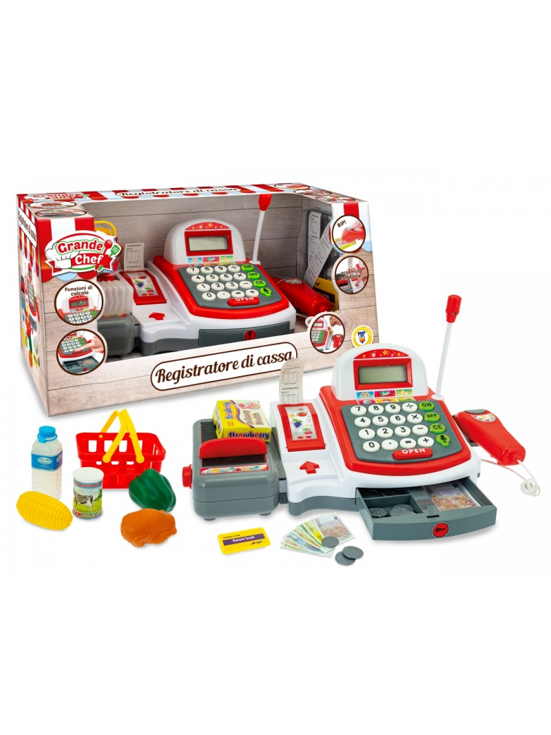 CUC-REGISTRATORE DI CASSA GRANDE CHEF FUNZIONANTE CON SCANNER, MICROFONO, VERDURAE SCONTRINO