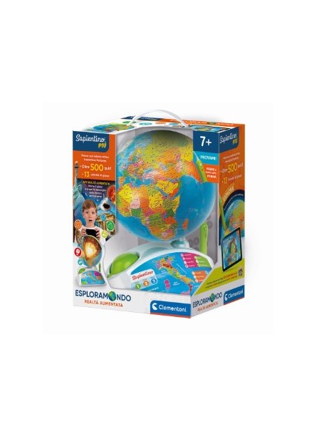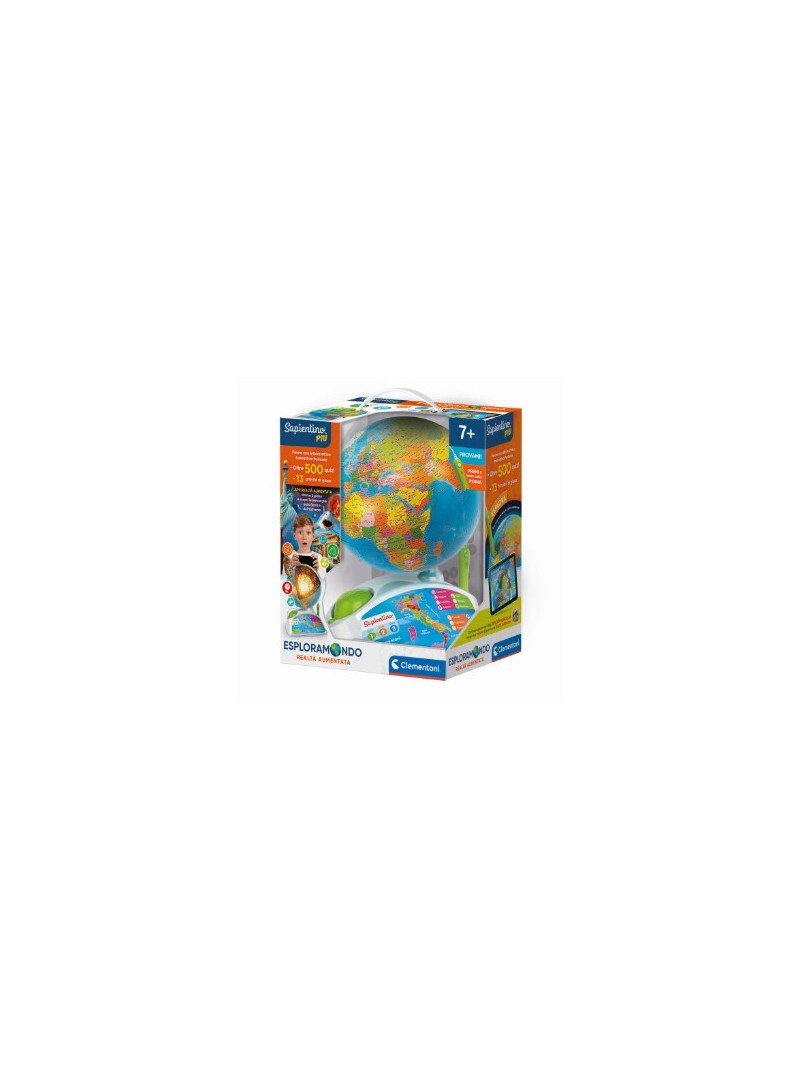 Un globo interattivo per andare alla scoperta delle bellezze del mondo e risolvere divertenti enigmi. per iniziare il viaggio della conoscenza il bambino dovrà puntare la penna a lettura ottica sul mappamondo per scoprire tutte le informazioni del luogo selezionato. più di 500 domande suddivise in tre livelli di difficoltà crescente per verificare le nozioni acquisite e sfidare amici e genitori. tante ore di informazioni e 13 funzioni di gioco per un divertimento senza fine! informazioni su: continenti, nazioni, capitali, superficie, popolazione, moneta, lingua, territorio, rilievi, fuso orario, curiosità , prodotti tipici, inni nazionali, clima, storia e governo. con l'app "esploramondo" il gioco continua! si potrà sperimentare la realtà aumentata inquadrando il mappamondo il globo prenderà vita! app compatibile con android e apple. il globo attraverso la nuova app con la realtà aumentata prenderà vita! oltre a giocare con quiz interattivi, sarà possibile visionare monumenti e animal i animati collocati sul globo.