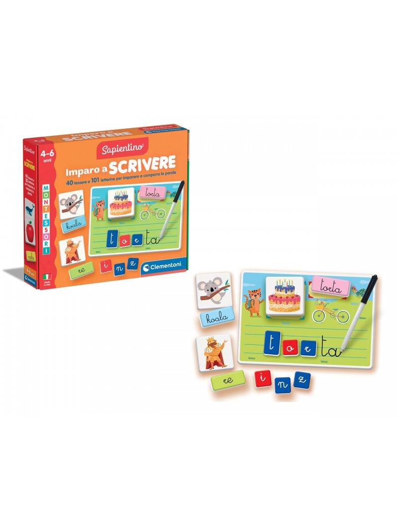 Un kit completo ispirato al metodo Montessori per imparare a comporre e scrivere le prime parole. Tessere con lettere in corsivo, tessere illustrate con soggetti, cartellini con i nomi dei soggetti e una lavagna-compositoio per scrivere le parole con la penna cancellabile. Consente 3 modalità di gioco: la composizione di parole, la scrittura sulla lavagna-compositoio e la lettura con l'associazione tra immagini e parole. Il bambino verrà introdotto alla scrittura e alla lettura in modo graduale e spontaneo. Un gioco educativo Montessori che allena la manualità e arricchisce il linguaggio, consigliato per bambini a partire dai 3 anni. Made in Italy.