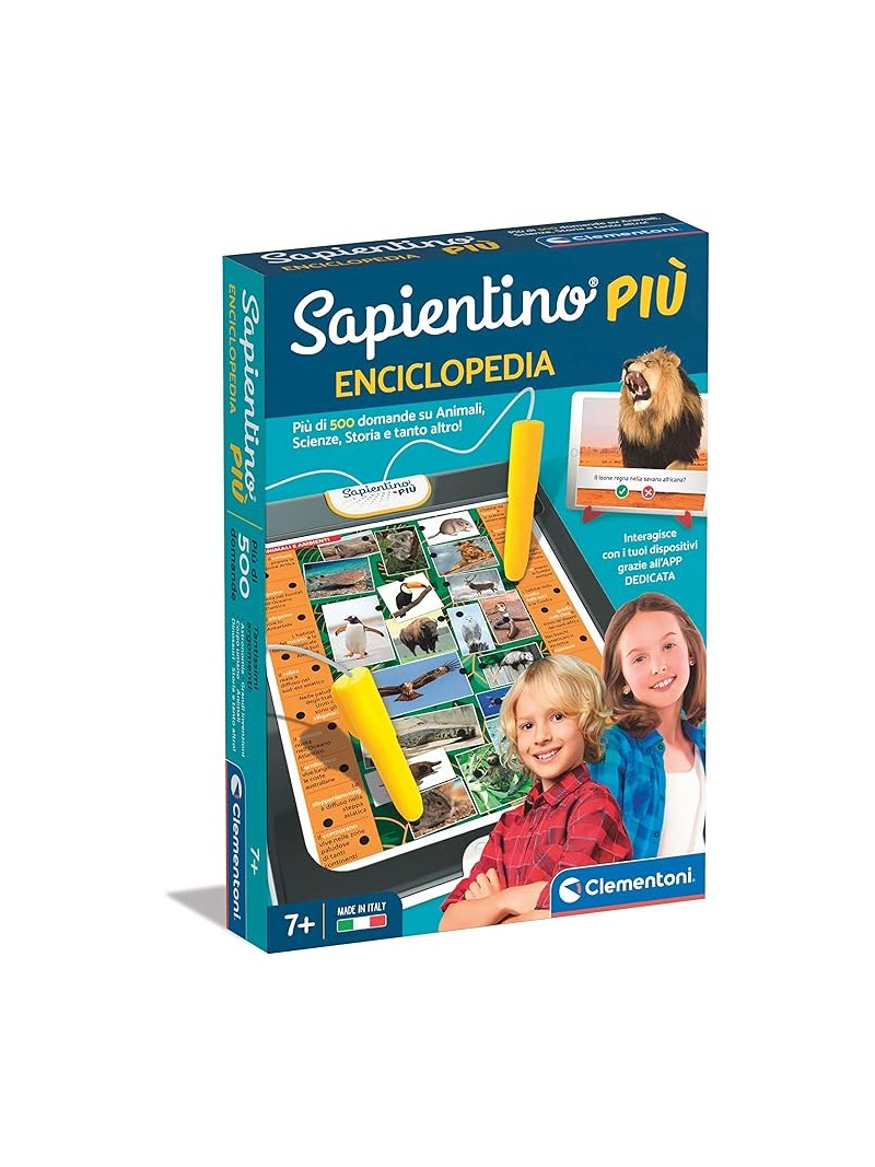 COSA CONTIENE: gioco educativo Sapientino Made in Italy; adatto per bambini dai 7 anni in su, include grandi schede illustrate con oltre 500 domande su animali, corpo umano, dinosauri e altro, e spinotti interattivi, con suoni e luci