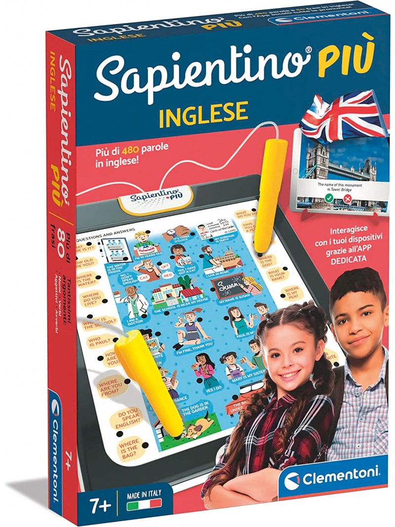 AREE DI SVILUPPO E TARGET: Un gioco educativo scolare che aiuta il bambino a sviluppare il linguaggio, la capacità di associazione e la memorizzazione di una nuova lingua. Un gioco elettronico parlante pensato per bambini dai 7 anni. Made in Italy.