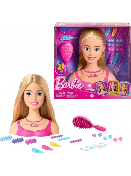 Ispira la creatività con questa testa Barbie Doll Styling Head! Ore di divertimento per lo styling dei capelli e innumerevoli look ti aspettano quando i bambini usano la loro immaginazione con i 20 accessori inclusi.