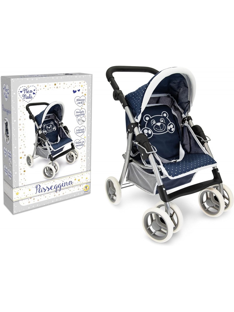 ? CARATTERSTICHE: Passeggino per bambole con Schienale Reclinabile e Maniglia Regolabile da 40cm a 65cm.
