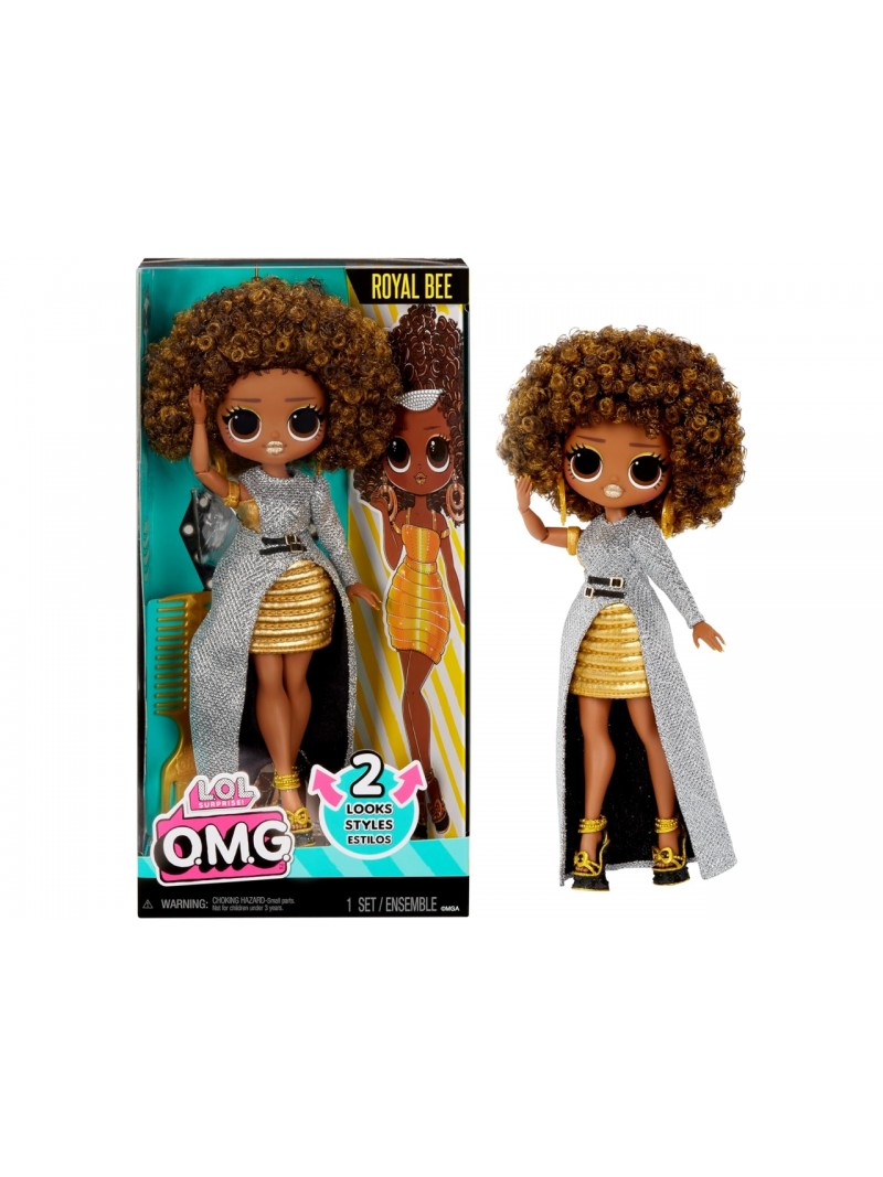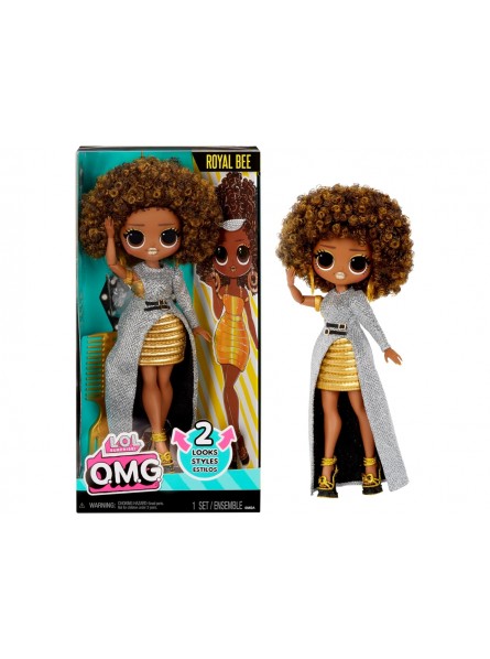 Le bambole alla moda LOL Surprise OMG più amate dai fan sono tornate in una veste glamour e con bellissime acconciature: saluta Royal Bee, la sorella maggiore del personaggio adorabile Queen Bee. Questa riedizione di Royal Bee mette in mostra le sue splendide caratteristiche, l’acconciatura, l’outfit strepitoso ed è snodata per un'infinità di pose. Vesti Royal Bee con il suo scintillante abito argentato con due affascinanti cinture nere. Scopri la sorpresa aggiuntiva con gli abiti di Royal Bee e trasforma istantaneamente il suo abbigliamento togliendo il vestito argentato per rivelare la scintillante tutina dorata con gonna che creano un look completamente diverso. Tra cui una bambola fashion OMG, abiti audaci, occhiali da sole alla moda, orecchini a cerchio, scarpe e un pettine per capelli.