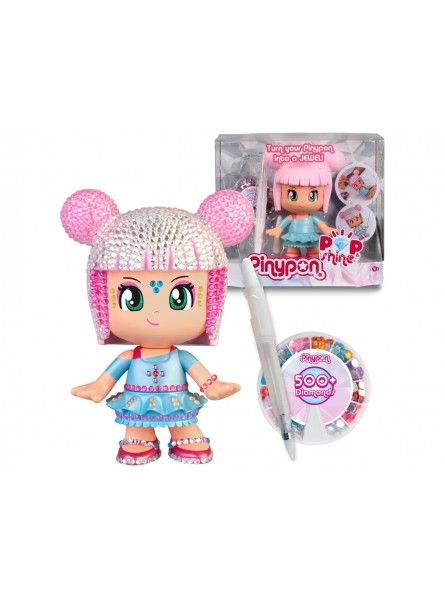 Con Pinypon Pop&Shine sarà possibile dar sfogo alla creatività! Personaggio da 17 cm con look molto trendy: capelli rosa con frangia e due codini, un vestitino con gonna di colore azzurro. Include la colla e una speciale penna decorativa per incollare oltre 500 cristalli in 7 colorazioni differenti.