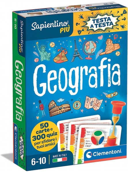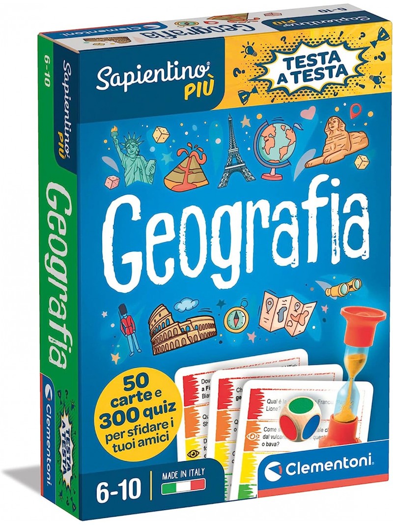 • QUIZ SAPIENTINO: Carte quiz per sfidare gli amici in una divertente gara a tempo, rispondendo a divertenti domande sulla geografia