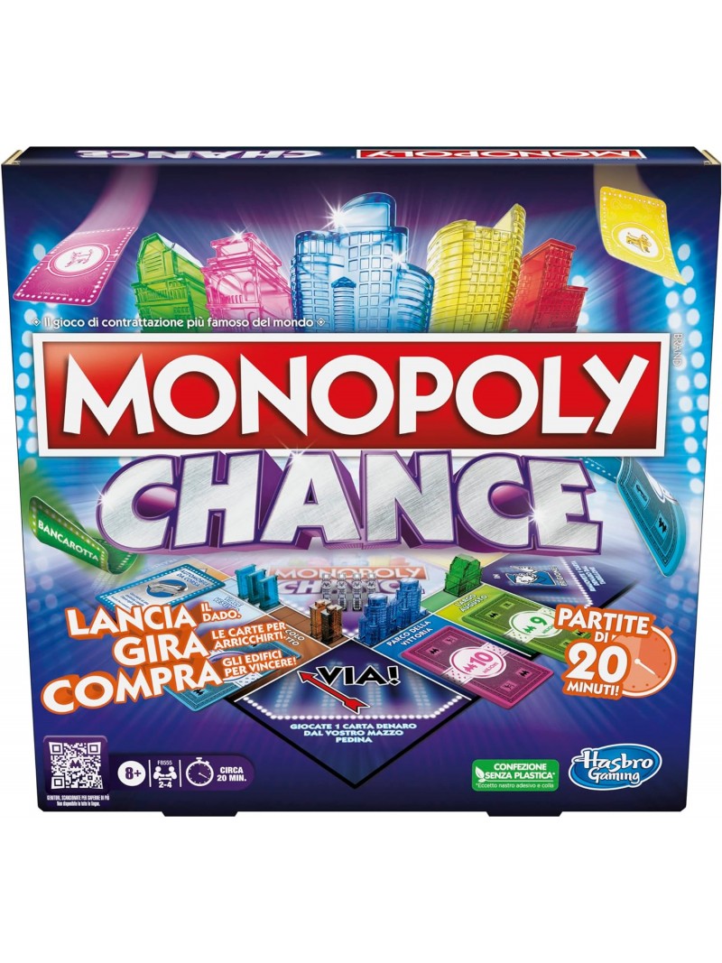 GIOCA PER CIRCA 20 MINUTI: dimentica ciò che sai di Monopoly! Il gioco Monopoly Chance è una versione ad alto rischio in cui occorre capovolgere delle carte e dove ogni partita dura circa 20 minuti