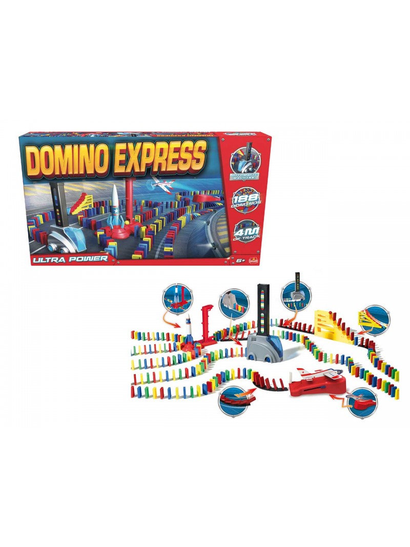 Crea un circuito straordinario con ultra power! Usa il camion posizionatore per posizionare le tue tessere domino.