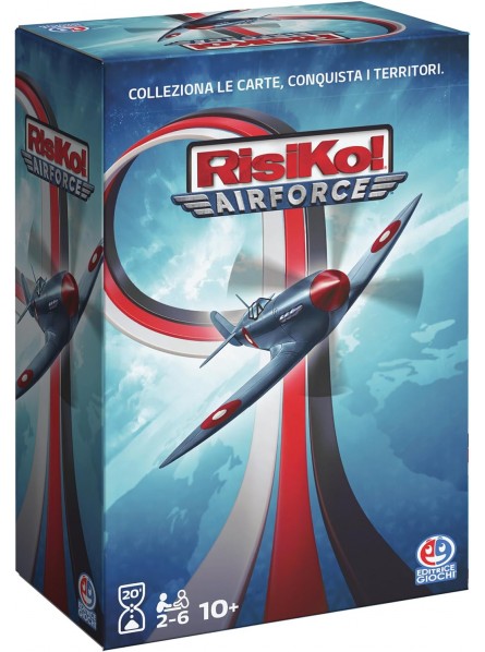 Include: 93 carte Risiko Airforce, 42 carte Territorio, 29 carte Infrastruttura, 12 carte Conflitto, 10 carte Crisi, 10 carte Medaglia al Valore, 7 carte Controllo Continentale, 3 dadi, istruzioni
