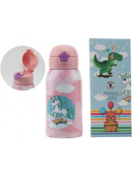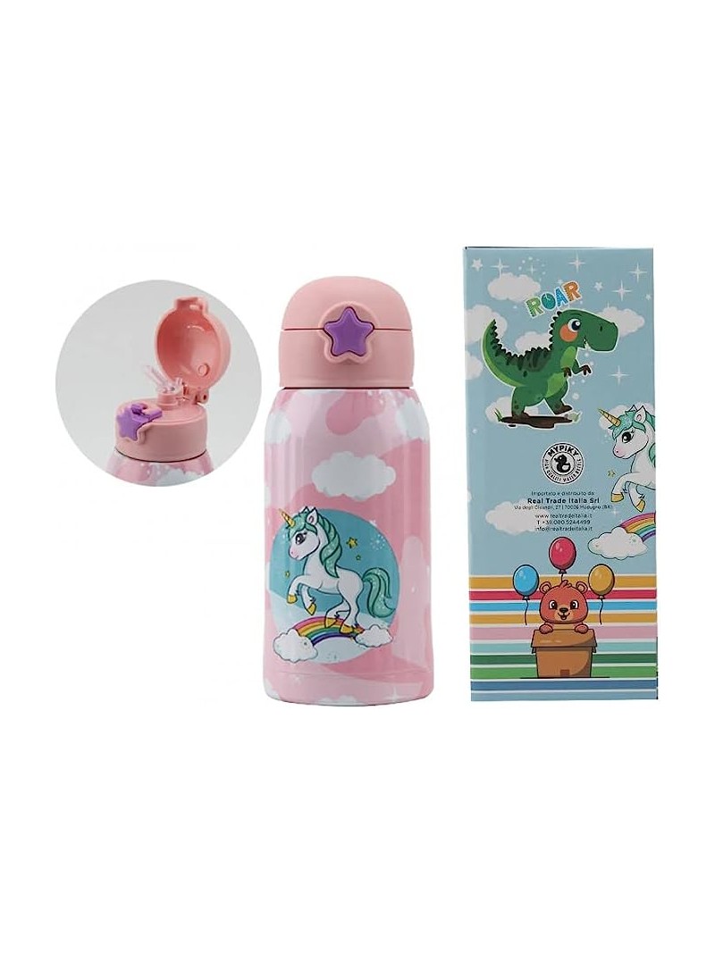 PAP-HAPPY BABY UNICORNO ROSA BORRACCIA TERMICA CON CANNUCCIA, 500ML, ACCIAIO INOX, FREDDO 24H, CALDO 12H, BPA FREE, ASS