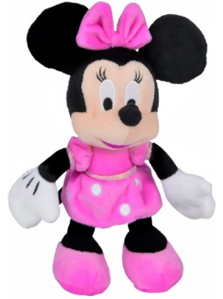 Minnie indossa un grazioso vestito fuxia e un fiocco abbinato; è alta 20 cm ed è realizzata in morbido peluche.
