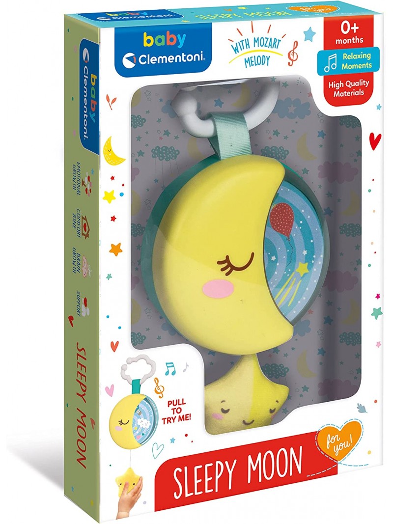 MELODIE RILASSANTI: Tirando la maniglia a forma di stellina il carillon suona una dolce melodia di Mozart e la lenta rotazione del disco illustrato favorisce il rilassamento del piccolo