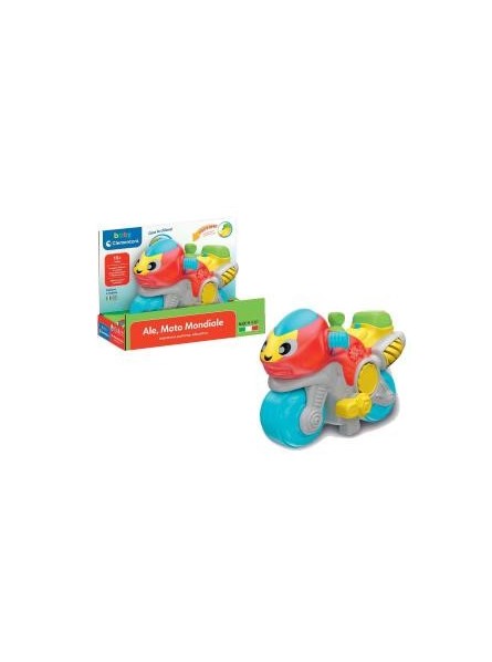 Una coloratissima moto che è anche un divertente centro attività elettronico. Supporta il bambino nell'apprendimento di lettere e numeri grazie ai tasti interattivi: il bauletto da premere e la chiave da girare. Stimola la manualità, la percezione visiva e uditiva, e supporta lo sviluppo e la comprensione della relazione causa-effetto. Gli elementi meccanici ed interattivi aiutano ad affinare la motricità fine e la coordinazione occhio-mano. I contenuti educativi sono in lingua italiana e inglese.
