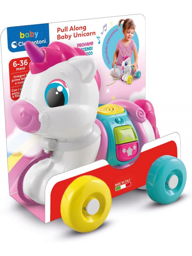 BENEFICI DEL GIOCO: Grazie ai tasti interattivi, alle ruote ed il cordino, l'unicorno supporta lo sviluppo sensoriale, motorio e del linguaggio