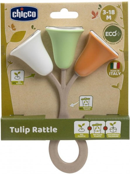 SONAGLIO TULIPANO: Leggero e pratico da afferrare, è pensato per intrattenere i più piccoli con il dolce tintinnio delle campanelle colorate ed è realizzato in Italia con plastica riciclata e bioplastica