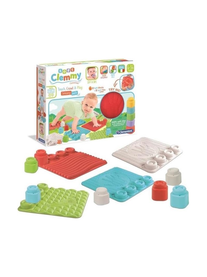 CLEMENTONI CLEMMY: mattoncini morbidi Made in Italy, brevettati, lavabili e sicuri, ideati per essere messi in bocca, lanciati e calpestati senza alcun rischio; profumati, dai colori vivaci e texture soft touch per un'esperienza multisensoriale