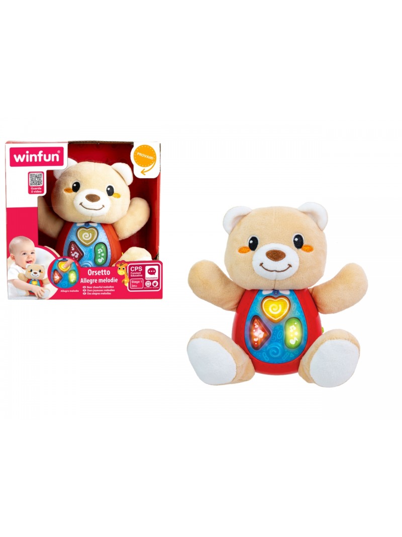 Il divertente Orsetto ha 3 pulsanti luminosi che attivano frasi in rima e apprendimento semplice. Impara melodie divertenti e allegre in modo semplice, inoltre l'Orsetto ha diversi strani effetti sonori. Questi tipi di giocattoli stimolano i sensi del bambino e stimolano la sua curiosita', diventera' presto il suo giocattolo preferito.