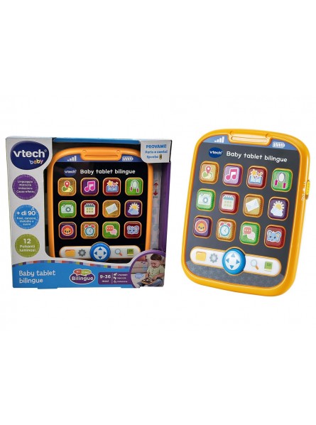 Scopri il tablet bilingue Baby, progettato per i più piccoli e ricco di attività educative in italiano e inglese! Con 12 pulsanti luminosi, i bambini possono esplorare divertenti funzioni come GPS, animali (Leone ed Elefante), allenamento, messaggistica, meteo, email, podcast, calendario, fotocamera e musica. Ogni volta che si premono le quattro frecce direzionali si attivano suoni coinvolgenti che stimolano la curiosità. La barra degli strumenti luminosa riproduce grafiche ispirate a famose app per un'esperienza interattiva unica. Inoltre, il tablet offre 2 canzoni e 10 melodie per intrattenere i più piccoli mentre imparano. Grazie alla funzione di spegnimento automatico è anche pratico da usare. Un modo divertente e educativo per avvicinare i bambini al mondo della tecnologia!