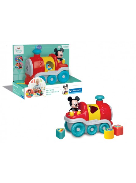 Un divertente trenino trainabile incastra forme con il simpatico personaggio Mickey alla guida. Il cilindro giallo può essere ruotato per trovare il foro perfetto ed incastrare la forma corrispondente. Premendo il fumaiolo, lo sportello sulla parte frontale della locomotiva si apre e permette di recuperare le formine al suo interno. Stimola la coordinazione occhio-mano, il riconoscimento delle relazione causa-effetto e la manualità. Età consigliata: da 9 mesi in su.