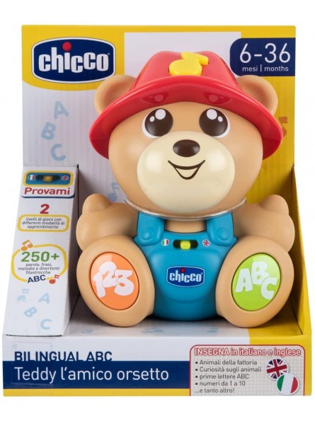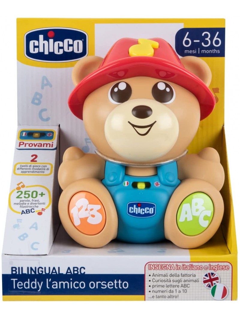 Il gioco Chicco Teddy Amico Orsetto è un pupazzo interattivo parlante bilingue (Italiano e Inglese)