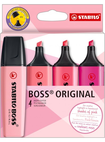 STABILO BOSS Original nell'edizione "Shades of Pink" con diverse sfumature di rosa. Colori perfettamente coordinati, ideali per ogni progetto creativo o per prendere appunti ed evidenziare!