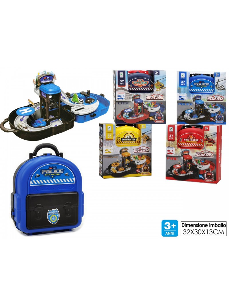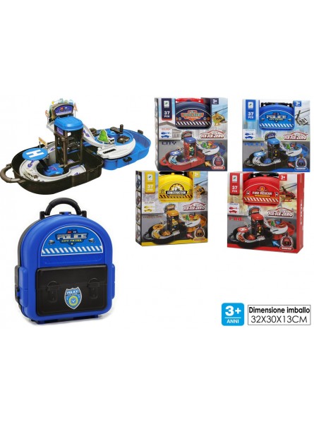 V-PISTA GARAGE RICHIUDIBILE POLICE/FIRE CON 1 ELICOTTERO E 1AUTO