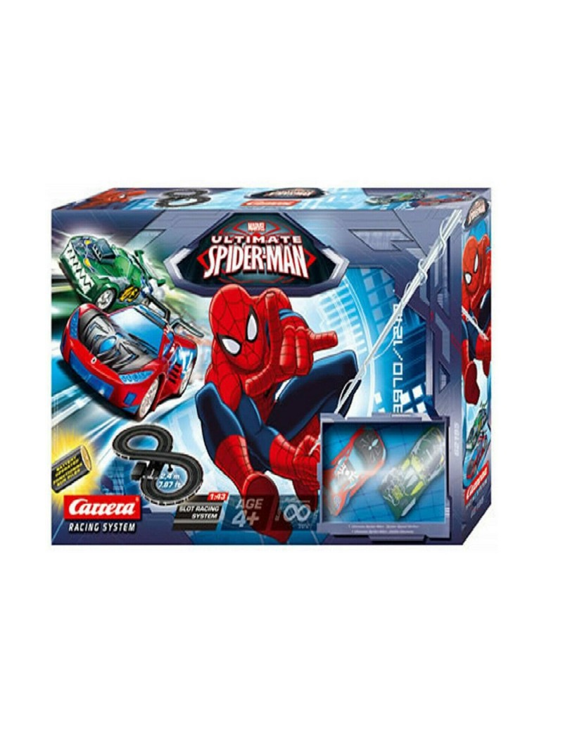 Entra in azione con l'Uomo Ragno RC pista e sperimenta nuove avventure da brivido! Questa pista offre l'esperienza di guida massimo in una scala 1:43. Guarda Spider-Man e Green Goblin zoom lungo i binari con questo sistema di fresco gara a batteria. Traccia forma una figura otto per incredibili novità e si trasforma. Include: 1 Spider-Man kart 1 Green Goblin